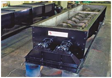 Wet Scraper Conveyors :- The hot material like ash, slag, dust, coal, etc. is carried in the water in this conveyor. Again the main features of our these conveyors are similar to chain conveyors as mentioned above. These are boat shaped conveyors used mainly below dust settling chamber ( DSC ) & Gas Cooling Tower ( GCT ).